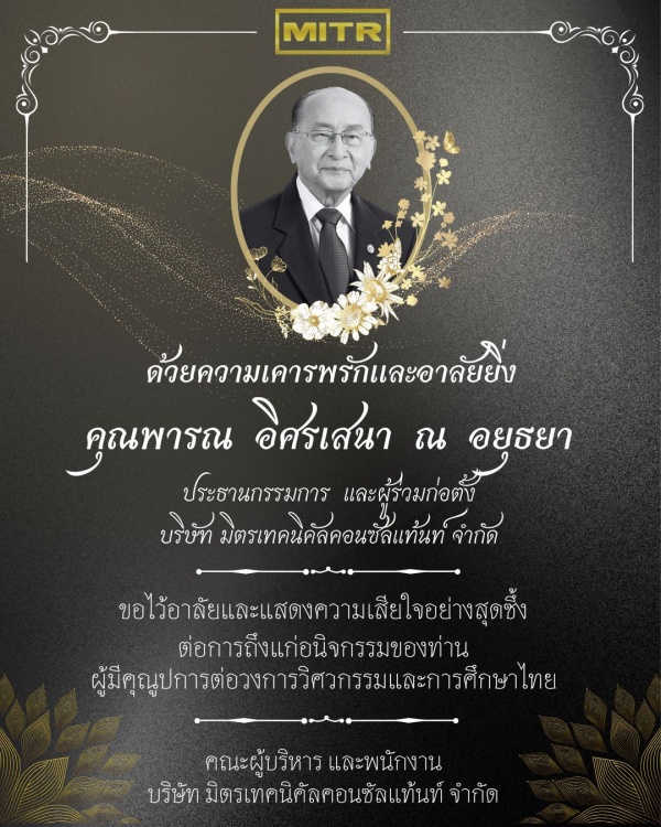 ขอไว้อาลัยและแสดงความเสียใจอย่างสุดซึ้งต่อการถึงอนิจกรรม คุณพารณ อิศรเสนา ณ อยุทธยา